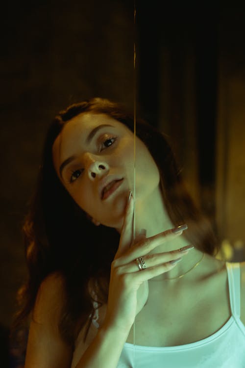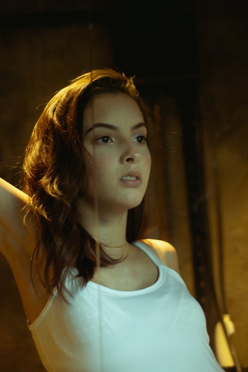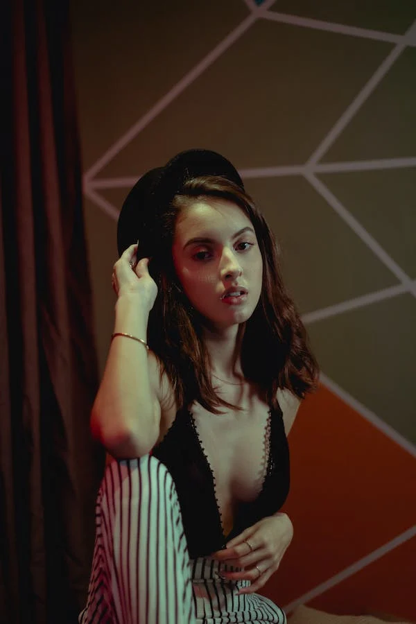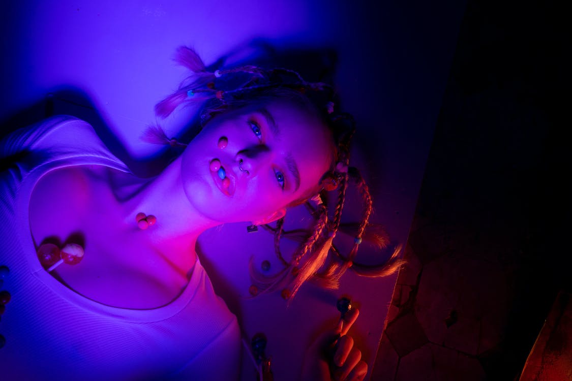 Check the shots of beautiful Caroline in hat with red and green lights.